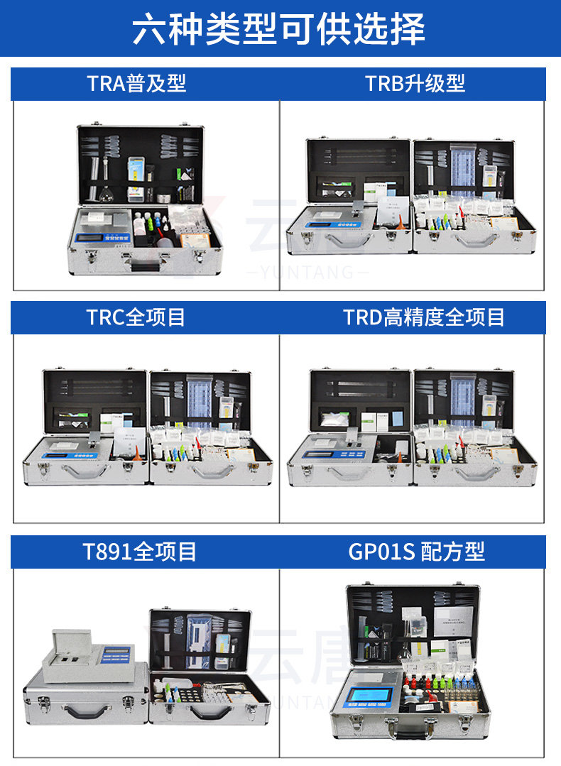該款為全項目土壤肥料養(yǎng)分檢測儀的升級款,噴塑鋼板外殼設計,堅固耐用,配套成套附件及成品藥劑。