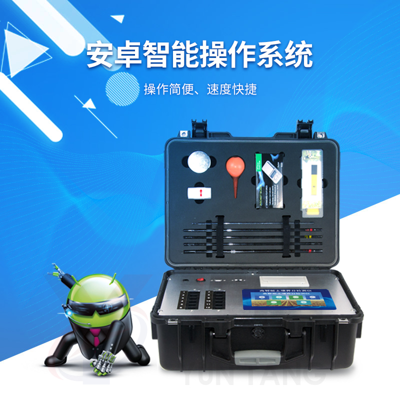 配套齊全:該儀器集藥、器、儀為一體,攜帶方便,相當(dāng)于一個(gè)小型移動(dòng)實(shí)驗(yàn)室,無(wú)需用戶自配附件,亦可靈活野外流動(dòng)測(cè)試。適于農(nóng)業(yè)服務(wù)部門或農(nóng)資經(jīng)銷商、高教院校、科研院所、合作社、肥料廠商、大種植戶測(cè)土施肥和鑒別肥料真假及環(huán)保檢測(cè)應(yīng)用。