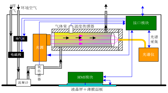 由于各種氣體分子在不同波段對光波有不同的吸收,通過對氣體吸收后的連續(xù)光譜的分析,實現(xiàn)了多種氣體的同時測量。