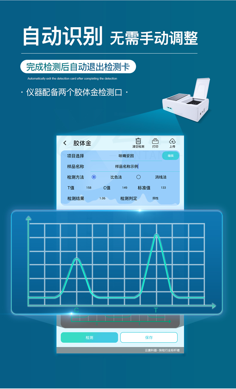 支持三金標(biāo)同時(shí)讀卡,可以極大提高檢測效率,節(jié)省人力物力。
